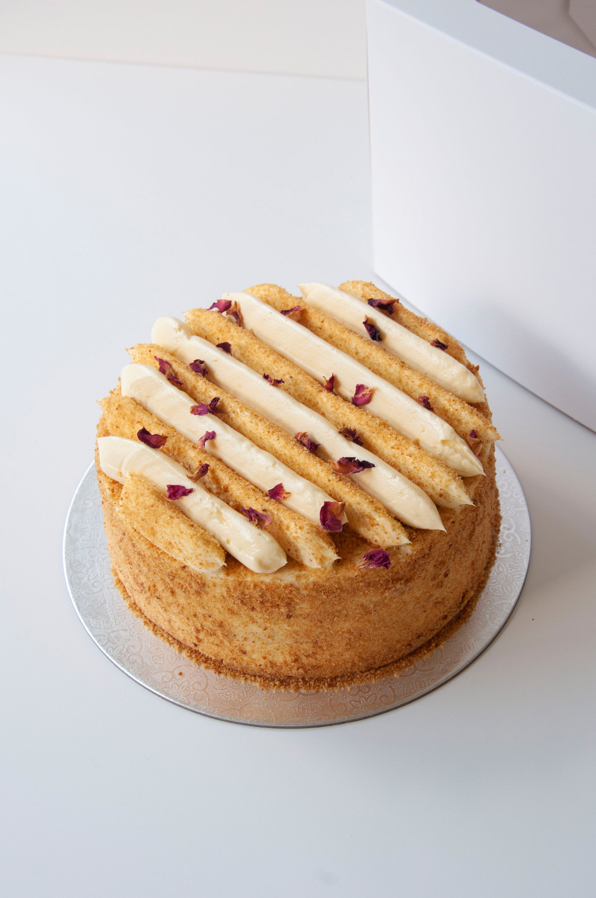 Soft, melt-in-your-mouth layers of honey sponge gently soaked in a creamy, sweet-and-sour filling. Each bite is tender and smooth, with a delicate balance of richness and lightness that gets even better with time.